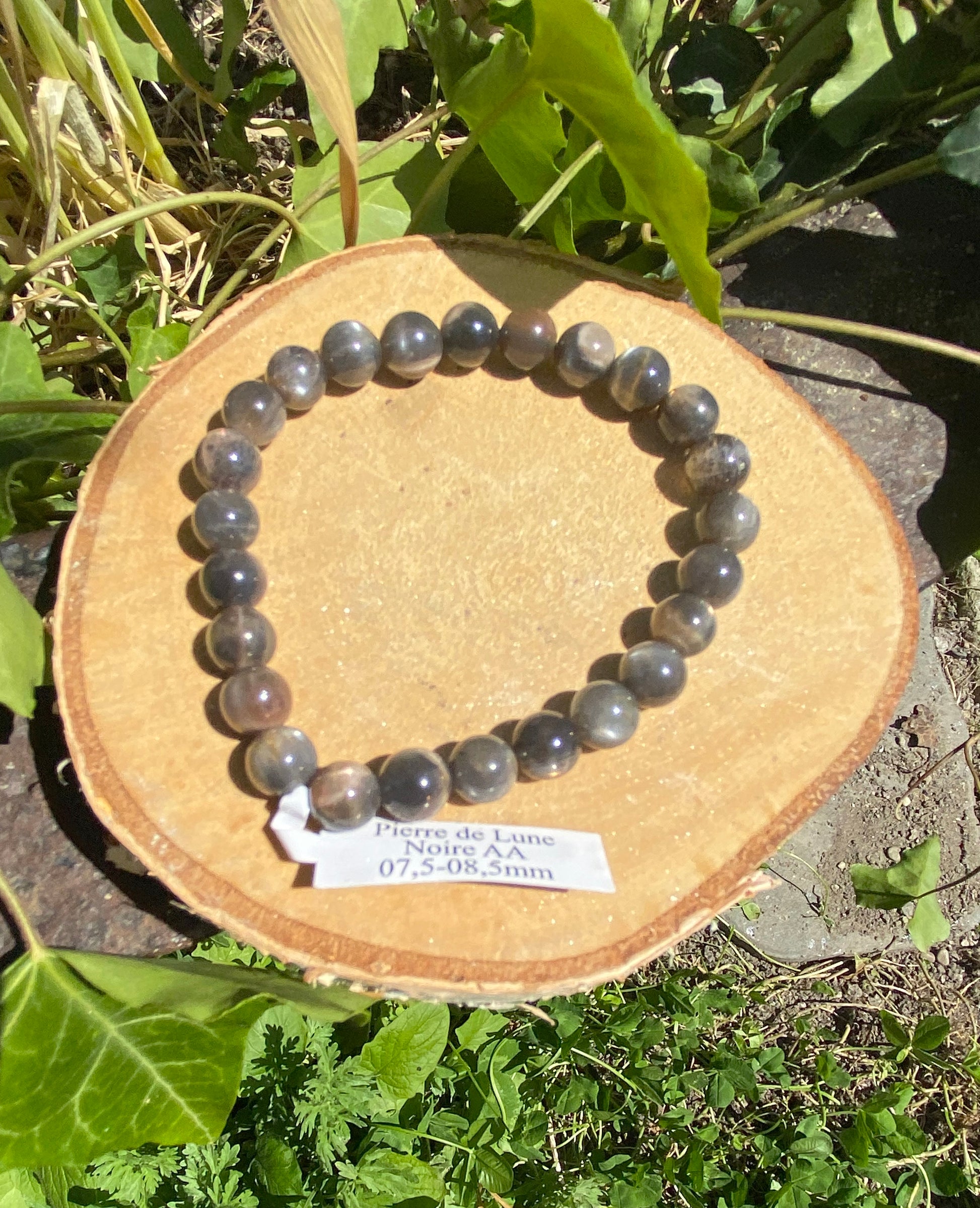Pierre de Lune Noire boules de 7,5/8,5 mm.