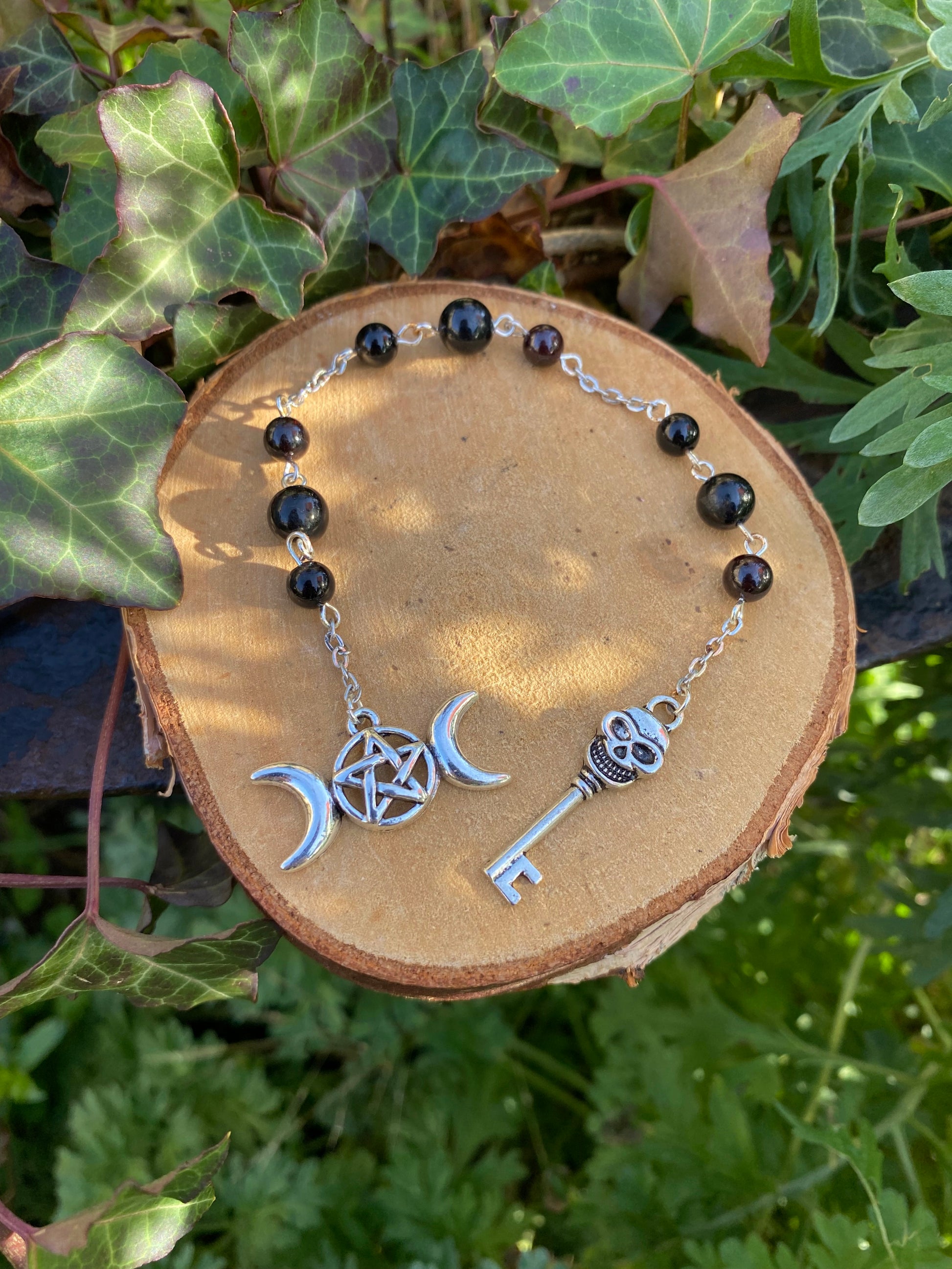 Breloques : Clé avec crâne - Triple lune pentagramme.