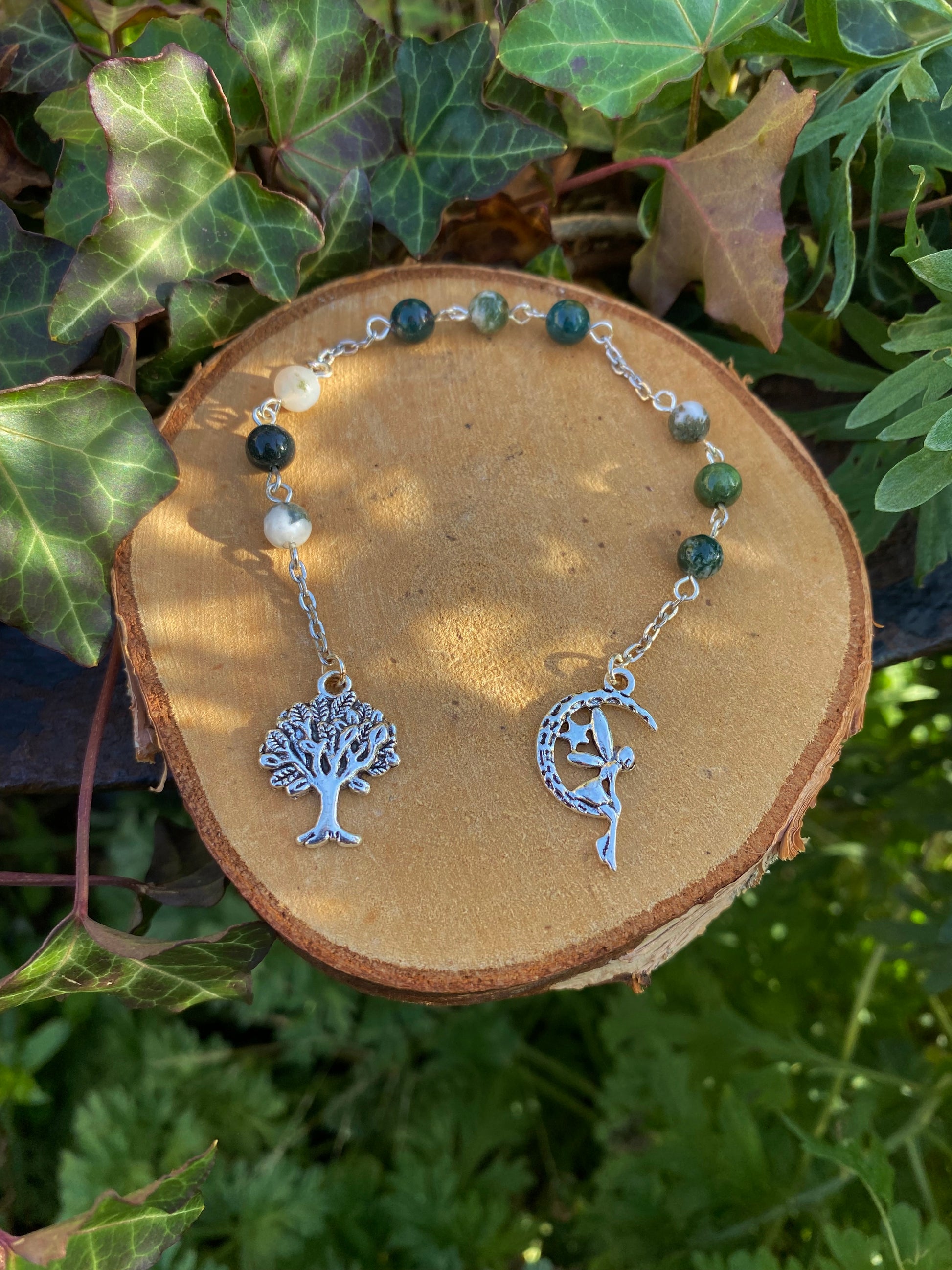Une breloque fée représentant les esprits de la nature et une breloque arbre qui représente la nature, la terre.
